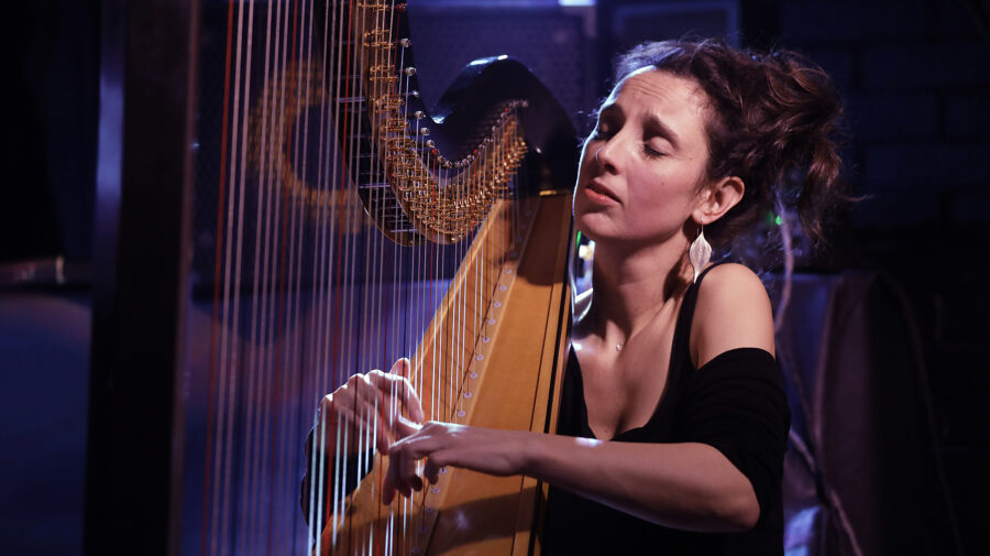 Lauréate du Prix Suisse des Musiques 2025, Julie Campiche est constamment dans une démarche d’innovation avec son instrument. Sa recherche la conduit à agrémenter sa harpe d’effets électroniques qui viennent compléter subtilement sa palette d’improvisatrice. Elle se crée ainsi une technique et un langage très personnel. Sa démarche musicale est animée par le désir de trouver l’infiniment universel au plus profond de l’intimité, de travailler sur l’oubli de soi et sur la création d’espaces où les rêves se réalisent. Le spectacle est dédié aux femmes invisibilisées par l’Histoire et à leur force.
